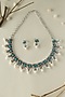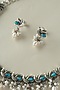 Featuring a white finish temple bird necklace studded with turquoise stones, set in 92.5 sterling silver. It is paired with a matching pair of earrings. Perfect wear for festive occasions or wedding ceremonies.