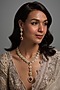Featuring a two tone finish necklace studded with ruby and emeralds, set in brass. It is paired with a matching pair of earrings. Perfect wear for festive occasions or wedding ceremonies.