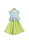 Cobalt Blue & Lime Green Embroidered Lehenga Set For Girls