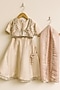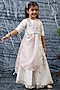 Featuring a gold jacket for girls in pure tissue and silk base with embroidery. It is paired with an embroidered blouse, a lehenga and a dupatta. Style it with sandals and hair accessories for festive occasions or sangeet ceremony.