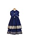 Featuring an indigo lehenga in organic cotton, handwoven chanderi and silk base with beaten gold hand embroidery. It is paired with a matching embroidered blouse.