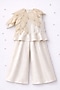 Featuring an ivory top for girls in ahimsa silk and pure tissue base with embroidery. It is paired with ahimsa silk palazzo pants. Style it with sandals and hair accessories for a festive occasion.