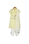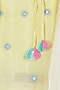 Featuring a lemon yellow kurta in organic cotton, handwoven chanderi and silk base with ruffle details, tassels and mirror hand embroidery. It is paired with contrasting pants and a dupatta.