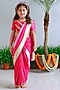 Pink Handwoven Chanderi Embroidered Pre-Draped Saree Set For Girls