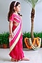 Featuring a pink pre-draped saree for girls in handwoven chanderi base with embroidery. It is paired with a blouse. Style it with sandals and a hair clip for a wedding, sangeet or festive ceremonies.