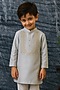 Silver Pure Tissue Embroidered Kurta Set For Boys