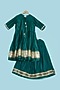 Featuring a teal lehenga in organic cotton, handwoven chanderi and silk base with beaten gold hand embroidery. It is paired with a matching embroidered kurta.