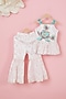 Featuring a white kurta for girls in organic cotton and handwoven chanderi base with bandhej print, sequins, pearls and floral motif embroidery. It is paired with matching sharara pants.