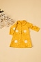 Yellow Organic Cotton Floral Embroidered Shirt Dress For Girls