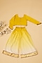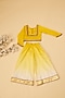 Featuring a yellow top for girls in organic cotton and handwoven chanderi base with hand embroidery. It is paired with palazzo pants. Style it with sandals and hair accessories for vacation wear or playdate.