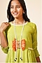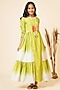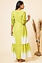 Featuring a light green ombre maxi layered dress in muslin cotton base with side-pleats and frill. It is paired with a matching inner.