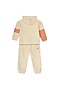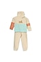 Featuring an off-white and mint colour blocked hoodie in cotton fleece base with embroidered slogan. It is paired with matching jogger pants.