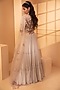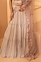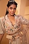 Featuring an ivory lehenga in a georgette base with pocket embroidery. It is paired with a matching triple georgette jacket blouse with dori, glass beads, and beads hand embroidery, a belt, a bag and a net dupatta.