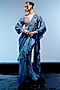 Featuring a marine blue draped saree in georgette, satin and organza base with 3D hand embroidery. It is paired with a blouse having layered sleeves. Accentuate with statement jewellery and heels for a wedding, sangeet or engagement ceremony.