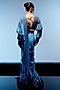 Marine Blue Georgette 3D Hand Embroidered Draped Saree Set