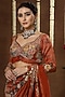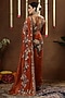 Featuring an orange pre-draped saree in georgette shimmer tissue base with hand embroidery and print. It is paired with a blouse. Style it with statement jewellery and block heels for a festive occasion, cultural event, wedding or sangeet ceremony.