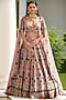 Featuring a purple lehenga in silk and satin organza base with embroidery. It is paired with a matching blouse and a tissue organza embroidered dupatta.