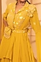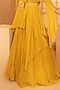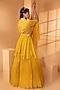 Featuring a yellow lehenga in a georgette base. It is paired with a matching peplum jacket with sequins, glass beads, and thread embroidery, a belt, a bag and a net dupatta with 3D embroidery.