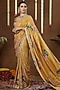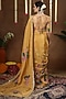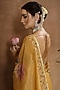 Featuring a yellow pre-draped saree in georgette shimmer tissue base with hand embroidery and print. It is paired with a blouse. Style it with statement jewellery and block heels for a festive occasion, cultural event, wedding or haldi ceremony.