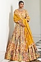 Featuring a yellow lehenga in silk base with hand embroidery. It is paired with a matching blouse and a satin organza dupatta.