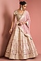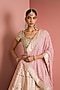 Featuring a light pink lehenga in viscose organza brocade base. It is paired with a hand embroidered blouse and an organza dupatta. Accentuate it with statement jewellery, floral low bun and heels for a wedding, sangeet or engagement ceremony.