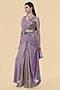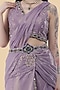 Featuring a mauve draped saree in georgette base. It is paired with a crystal embroidered blouse and a crystal work belt. Style it with statement earrings and heels, perfect for a festive occasion, sangeet or wedding ceremony.