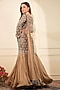 Featuring a mouse-colored fish cut skirt saree in satin organza base with an embroidered attached draped pallu. It is paired with an embroidered multi-colored blouse. Accentuate it with statement jewellery and heels for a festive occasion or wedding ceremony.