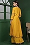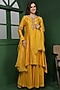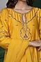 Featuring a mustard kurta in katan silk base with hand embroidery. It is paired with pants and an organza dupatta. Accentuate it with dangler earrings and block heels for festive occasions or pre-wedding ceremonies.