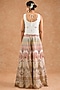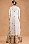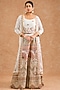 Featuring an off-white cape in viscose chinon chiffon base with multi-colored thread, sequins and zari embroidery. It is paired with a long blouse and sharara. Accentuate it with polki jewellery and block heels for festive soirees, daytime functions or resort weddings.