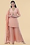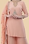 Featuring a peach pink kurta in crepe base with embroidery. It is paired with organza sharara pants and a georgette dupatta. Style it with statement earrings and heels, perfect for a festive occasion, an intimate pooja ceremony or family gathering.