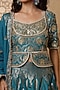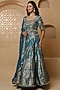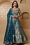 Featuring a persian blue lehenga in silk brocade base with hand embroidery. It is paired with a blouse and an organza dupatta. Accentuate it with dangler earrings and heels for a wedding or sangeet ceremony.