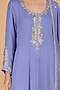 Featuring a purple anarkali in georgette base with hand embroidery. It is paired with sharara pants and a dupatta. Style it with statement earrings and heels, perfect for a festive occasion, sangeet or pooja ceremony.