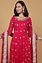 Featuring a rani pink anarkali in georgette base with motifs and hand work. It is paired with katan silk pants and a georgette dupatta. Accentuate it with dangler earrings and heels for a festive occasion or a pre-wedding ceremony.