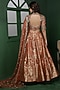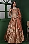 Featuring a rust orange lehenga in banarasi silk brocade base. It is paired with a blouse having sequins and cutdana work, including a dupatta. Accentuate it with dangler earrings and block heels for weddings or sangeet ceremonies.