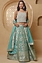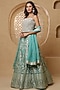 Teal Blue Brocade Pearl Work Lehenga Set