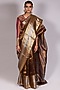 Featuring a brown saree in tissue base. It is paired with a matching unstitched blouse.