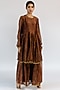 Featuring a chocolate brown woven kaftan in tissue silk base with embroidery. It is paired with contrasting pants and an underdress.