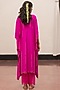 Featuring a fuchsia woven kaftan in moonga silk base with embroidery. It is paired with organza silk pants. Accentuate this kaftan set with dangler earrings and block heels for festive occasions.