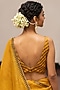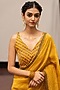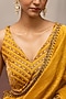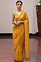 Featuring a golden yellow woven saree in crushed silk base with embroidery. It is paired with a brocade silk blouse. Accentuate this saree set with dangler earrings and block heels for pre-wedding ceremonies.