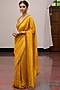 Golden Yellow Crushed Silk Embroidered Woven Saree Set