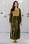 Featuring an olive green kaftan dress in velvet base with embroidery.