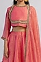 Featuring a pink woven and hand-crushed lehenga in tissue silk base. It is paired with a matching blouse and a dupatta.