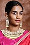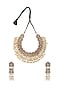 Featuring a gold finish necklace studded with kundan polki and golden pearls, set in mixed metal. It is paired with a matching pair of dangler earrings.