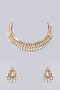 Featuring a 18kt gold plated necklace studded with cubic zirconia, set in copper. It is paired with a matching pair of earrings. Add a touch of sparkle to your ensemble, perfect for wedding ceremonies or festive celebrations.