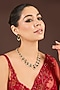 Featuring a 18kt gold plated necklace studded with diamonds and emerald cubic zirconia, set in copper. It is paired with a matching pair of earrings. Add a touch of sparkle to your ensemble, perfect for wedding ceremonies or festive celebrations.