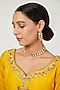 Featuring a 22 Kt gold plated choker necklace studded with kundan polki, set in mixed metal. It is paired with a matching pair of dangler earrings.