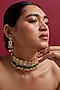 Featuring a 22kt gold plated choker necklace studded with kundan polki, agates and beads, set in mixed metal. It is paired with a matching pair of earrings.