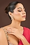 Featuring a pair of 22kt gold plated dangler earrings studded with kundan polki, mint stones and pearls, set in mixed metal. Add a touch of sparkle to your ensemble, perfect for wedding ceremonies or festive celebrations.