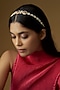 Featuring a 22kt gold plated mathapatti studded with kundan polki, ruby, emerald stone and pearls, set in mixed metal. Perfect for festive occasions or wedding ceremonies.