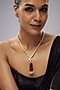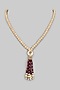 Featuring a 18 kt gold necklace studded with pearls, ruby beads and cubic zirconia, set in copper. Perfect for weddings or festive occasions.